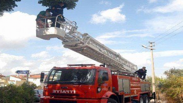 Ortaca'da çıktığı ağaçta mahsur kalan sokak kedisi HAYDOS ve Muğla Büyükşehir Belediyesi Ortaca İtfaiye Grup Amirliği ekiplerinin operasyonuyla kurtarıldı.