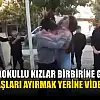 Ortaokullu kızlar birbirine girdi, arkadaşları ayırmak yerine video çekti