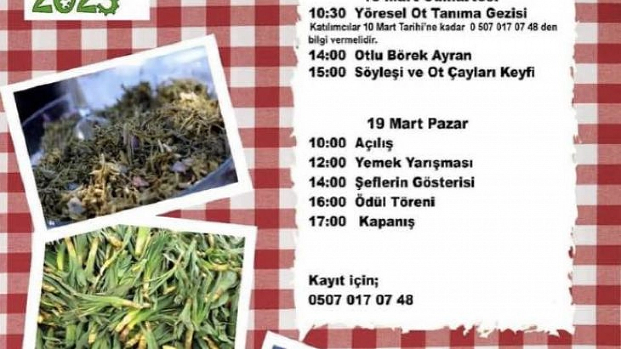 İki gün sürecek programın ilk gününde yöresel ot tanıma gezisi, otlu börek ayran ile söyleşi ve bitki çayları keyfi etkinliği gerçekleştirilecek. Programın ikinci günü olan 19 Mart Pazar günü ise yemek yarışması ve şeflerin gösterisi yer alacak. Yarışmalarda dereceye giren katılımcılara ödüllerin takdim edilmesinin ardından festival sona erecek.