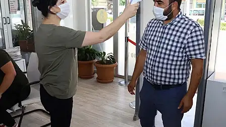 Çeşitli iş ve işlemleri için belediye binasına gelen vatandaşların, öncelikle kapı girişinde görevli personel tarafından ateş ölçer cihazı ile vücut ısısı tespit ediyor. Ateşi normal seviyede olan vatandaşların, maske ile girişlerine izin veriliyor. Belirli periyotlar ile dezenfekte edilen belediye binasının girişinde ve bina içerisinde farklı alanlarda maske kullanımı, hijyen ile ilgili bilgilendirici afişlere yer verildi.