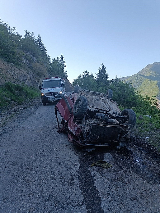60 metrelik uçuruma yuvarlanarak alt yola düşen araçtaki 2 kişi ağır yaralanırken, sürücünün alkollü olduğu öğrenildi.