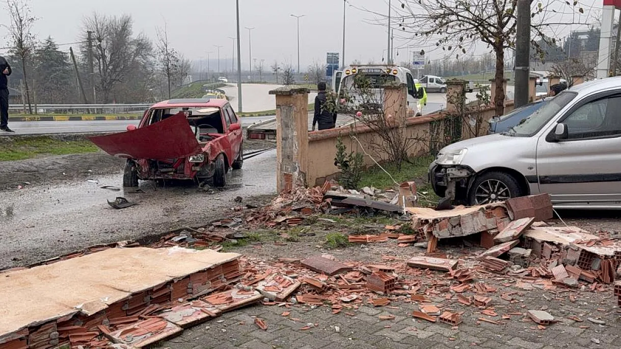 Otomobil bahçe duvarını yıktı: 5 yaralı