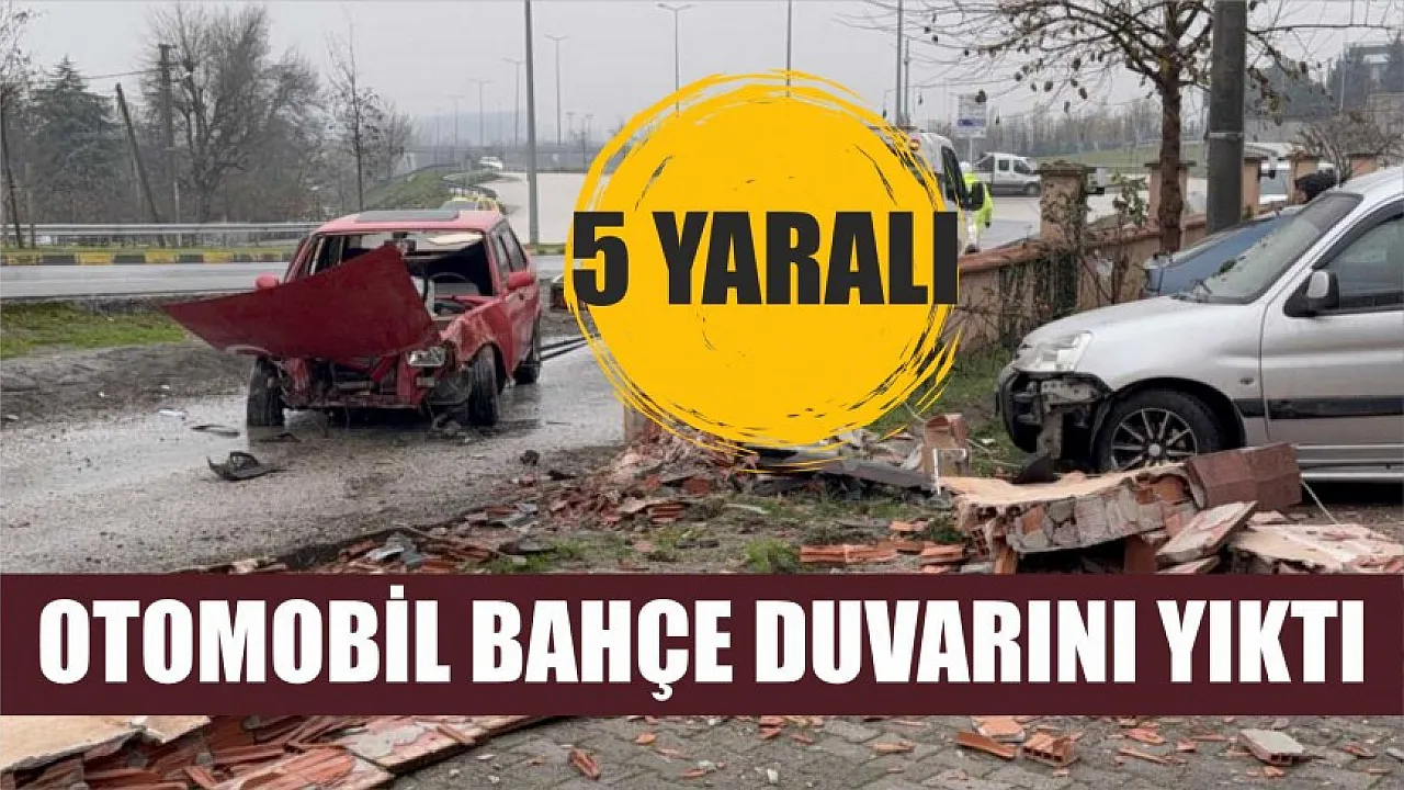 Kontrolden çıkıp bahçe duvarını yıkan otomobildeki 3'ü çocuk 5 kişi yaralandı.