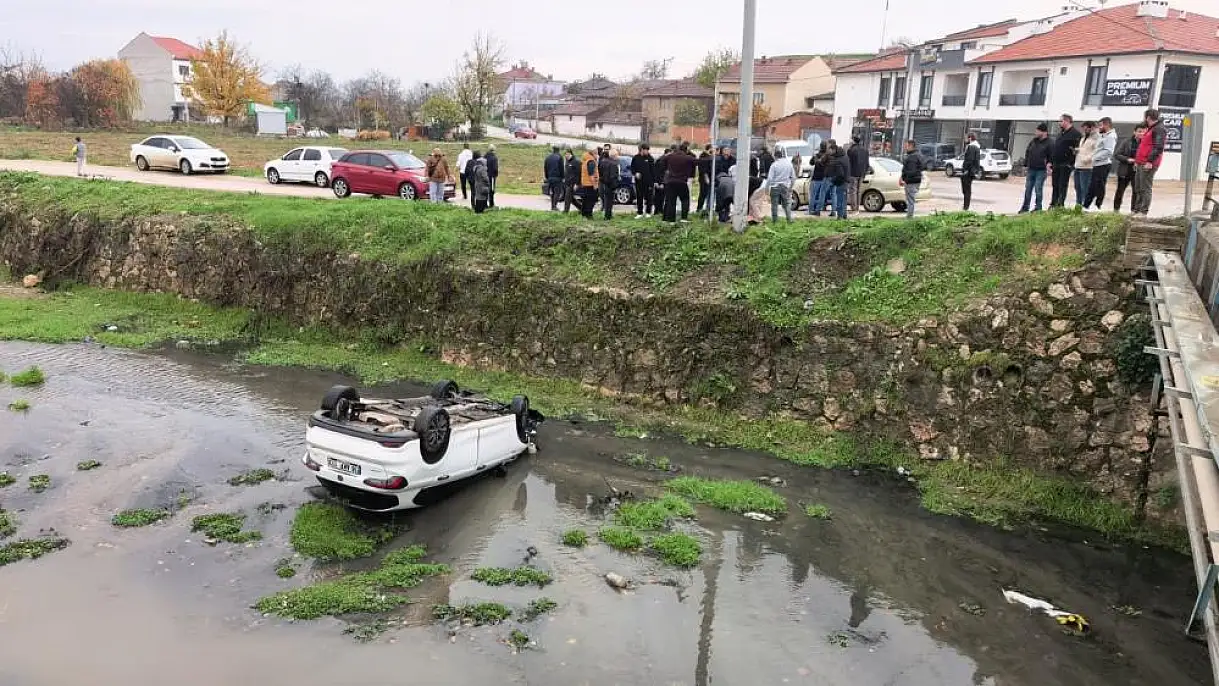 Bursa'nın İnegöl ilçesinde kontrolden çıkarak dere yatağına uçan otomobildeki 3 kişi yaralandı.