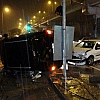 Otomobil ile çarpışan hafif ticari aracın yan yattı