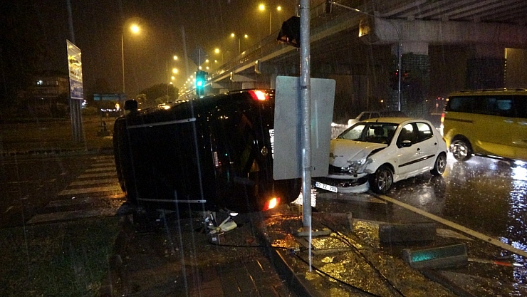 Kaza, Sorgun-Otogar Köprülü Kavşak yan yolda meydana geldi. Antalya istikametine seyir halindeki Ulaş Aslankoç’un kullandığı 07 ZZ 206 plakalı otomobil, Sorgun Bulvarı'na dönen Fuat Kuş’un kullandığı 07 LDU 36 plakalı hafif ticari araç ile çarpıştı. Hafif ticari araç, çarpmanın şiddetiyle yan yatıp trafik lambalarına çarparak durabildi. Kazayı görenler durumu 112 Acil Çağrı Merkezi'ne bildirdi. İhbarla adrese sağlık ve polis ekibi sevk edildi. Yaralanan otomobilin yolcusu Kamer Aslankoç, sağlık ekibinin olay yerindeki müdahalesinin ardından ambulansla hastaneye kaldırıldı. Kazanın ardından kendisini iyi hissettiğini belirten, bir süre sonra rahatsızlanan hafif ticari araç sürücüsü Fuat Kuş kendi imkanlarıyla hastaneye gitti. Yaralıların sağlık durumlarının iyi olduğu bildirildi. Sağanak yağışa rağmen trafik ekipleri trafiği rahatlatmak için kazaya karışan otomobile iterek güvenli noktaya çekti.