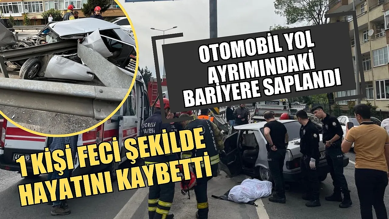 Kocaeli'nin İzmit ilçesinde meydana gelen kazada yol ayrımındaki bariyer otomobilin ön camından girip arka koltuğuna kadar ilerledi. Feci kazada bir kişi öldü.