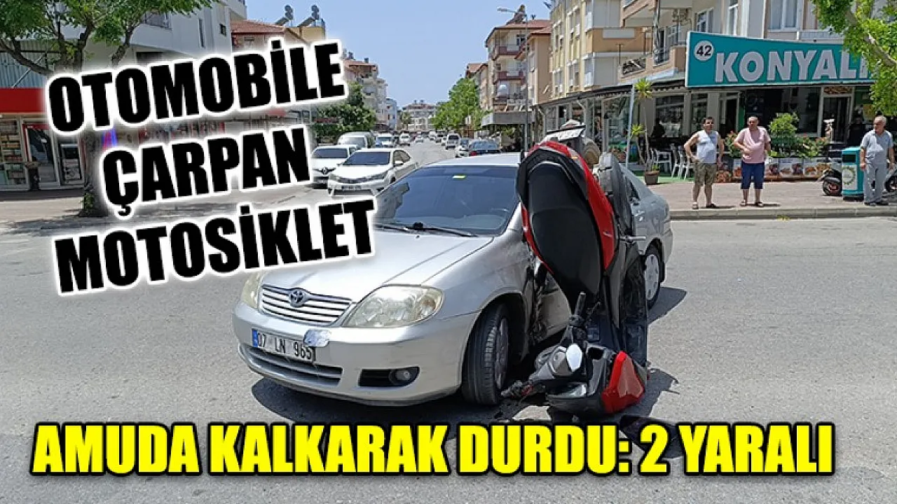 Otomobile Çarpan Motosiklet Amuda Kalkarak Durdu: 2 Yaralı