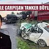 Tanker ile karşı şeritten gelen otomobil kafa kafaya çarpıştı. Çapmanın etkisiyle alev alan tank patladı. Savaş alanını andıran kaza görüntüleri kameralara yansıdı. Kazada tanker ile çarpışan otomobil sürücüsü Eşrefzade Mahalle muhtarı hayatını kaybederken yanındaki kişi ağır yaralandı.