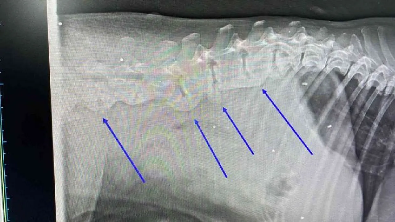 Araç çarpması nedeniyle kalçasında kırık olan köpeğin vücudunda onlarca saçmaya rastlandı. Saçmalar, hayvanın daha önce tüfekle vurulduğunu ve vücudunda saçmalarla yaşadığını ortaya çıkardı. Köpeğin ne zaman vurulup ne zamandan beri vücudunda saçmalarla yaşadığı bilinmiyor. Hayvanın tedavisinin özel bir veteriner kliniğinde sürdüğü öğrenildi.