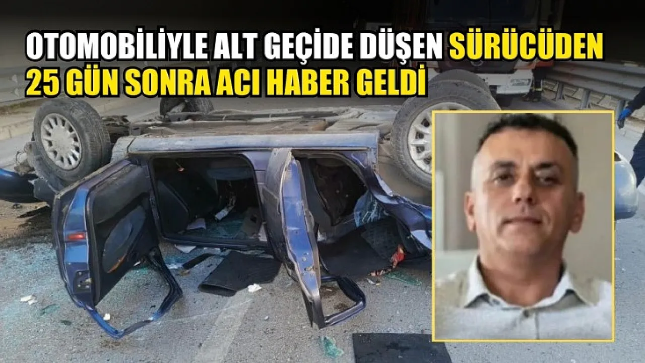 Otomobiliyle alt geçide düşen sürücüden 25 gün sonra acı haber geldi