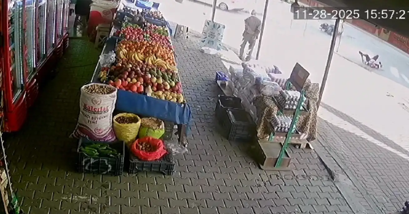 Motosikletin otomobile çarpması sonucu meydana gelen trafik kazasında motosiklet sürücüsü metrelerce havaya savrulup yola düştü. Yaralanan sürücüye ilk müdahale olay yerindeki hemşireden gelirken, kaza ve müdahale anları güvenlik kamerasına yansıdı.
