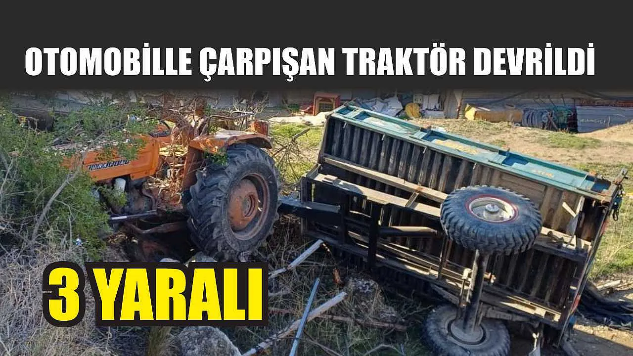 Otomobille çarpışan traktör devrildi: 3 yaralı