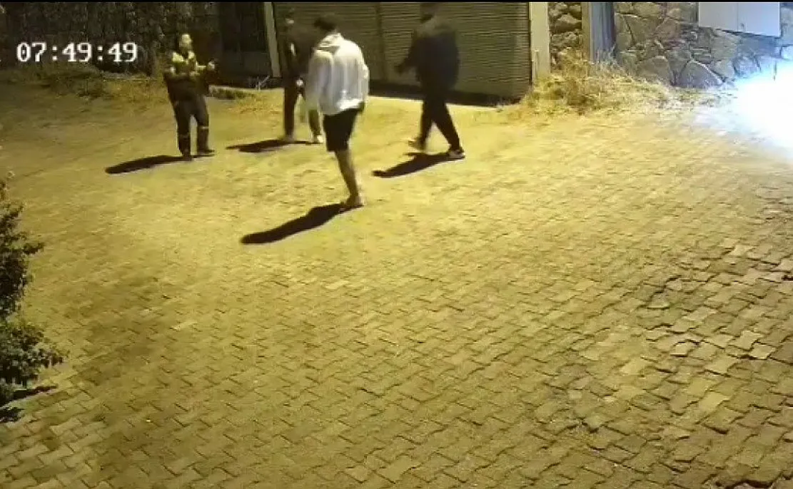 Muğla'nın Bodrum ilçesinde motosikletle kuryelik yapan İsmail Zoroğlu'na otomobille çarpan şahıslar, daha sonra kuryeyi etti. O anlar, güvenlik kameralarına yansıdı.