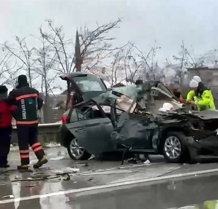 Otoyolda tırın altına giren otomobil kağıt gibi ezildi: 1 ölü, 3 yaralı