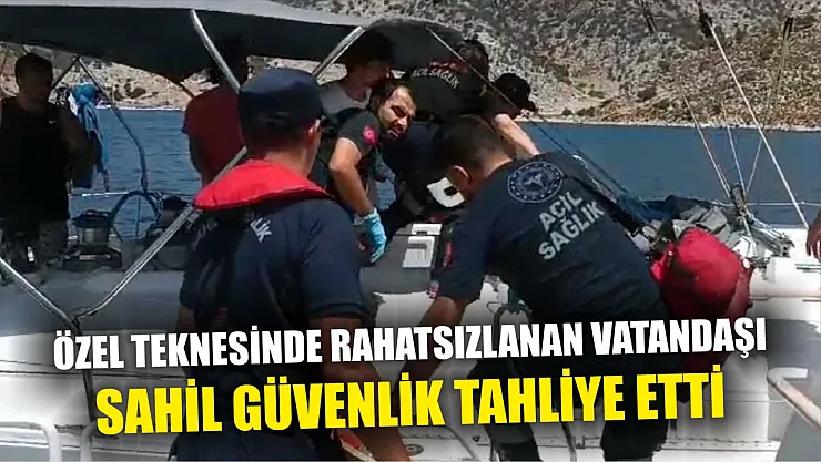 Muğla'nın Marmaris ilçesi açıklarında seyreden özel teknede rahatsızlanan vatandaş Sahil Güvenlik ekiplerince tıbbi tahliyesi gerçekleştirildi.
