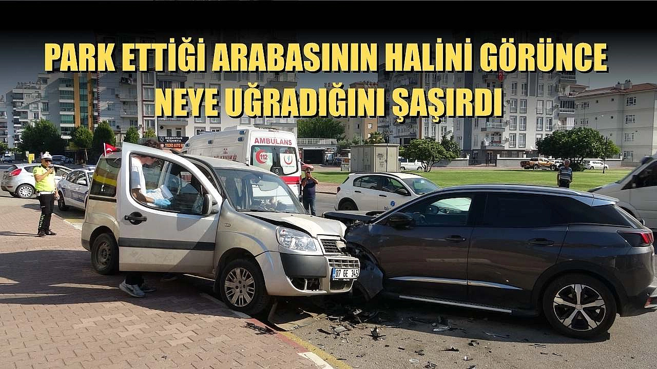 Antalya'da meydana gelen trafik kazasında seyir halinde iken direksiyon hakimiyetini kaybeden sürücü, park halindeki başka bir araca çarparak durabildi.