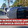 Park halindeki araçlara çarpıp yan yatan otomobilin sürücüsü yaralandı