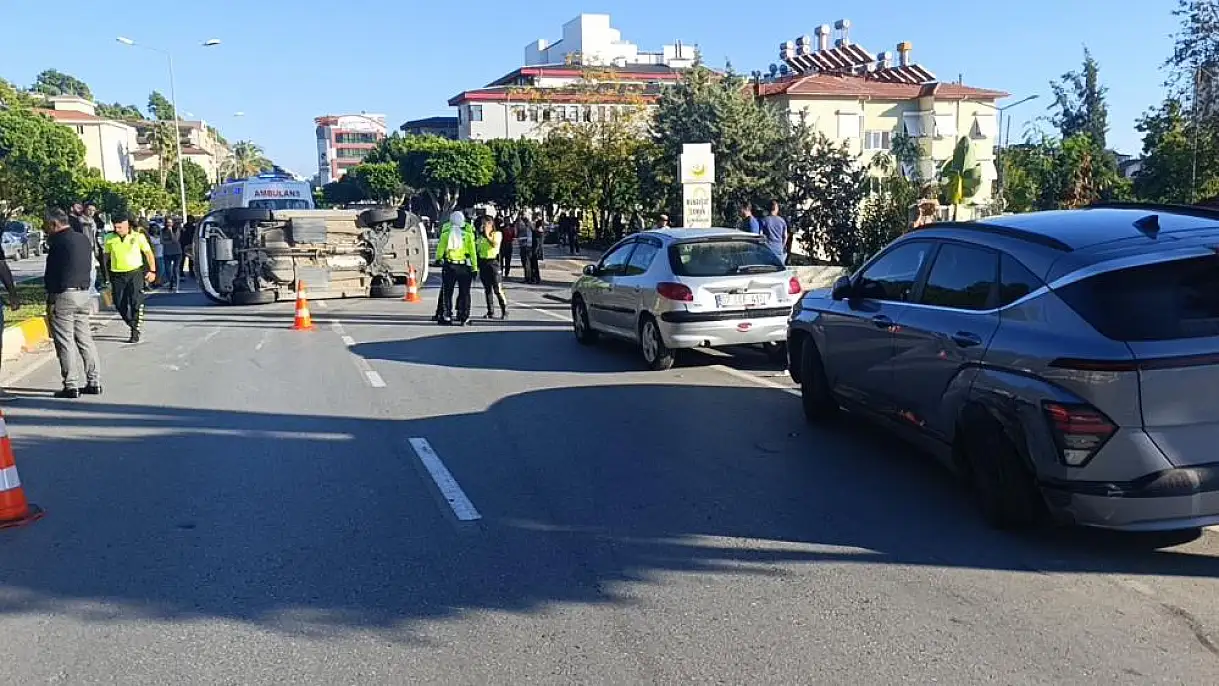 Antalya'nın Manavgat ilçesinde meydana gelen kazada yol kenarında park halindeki araçlara çarpıp devrilen otomobilin sürücüsü yaralandı.