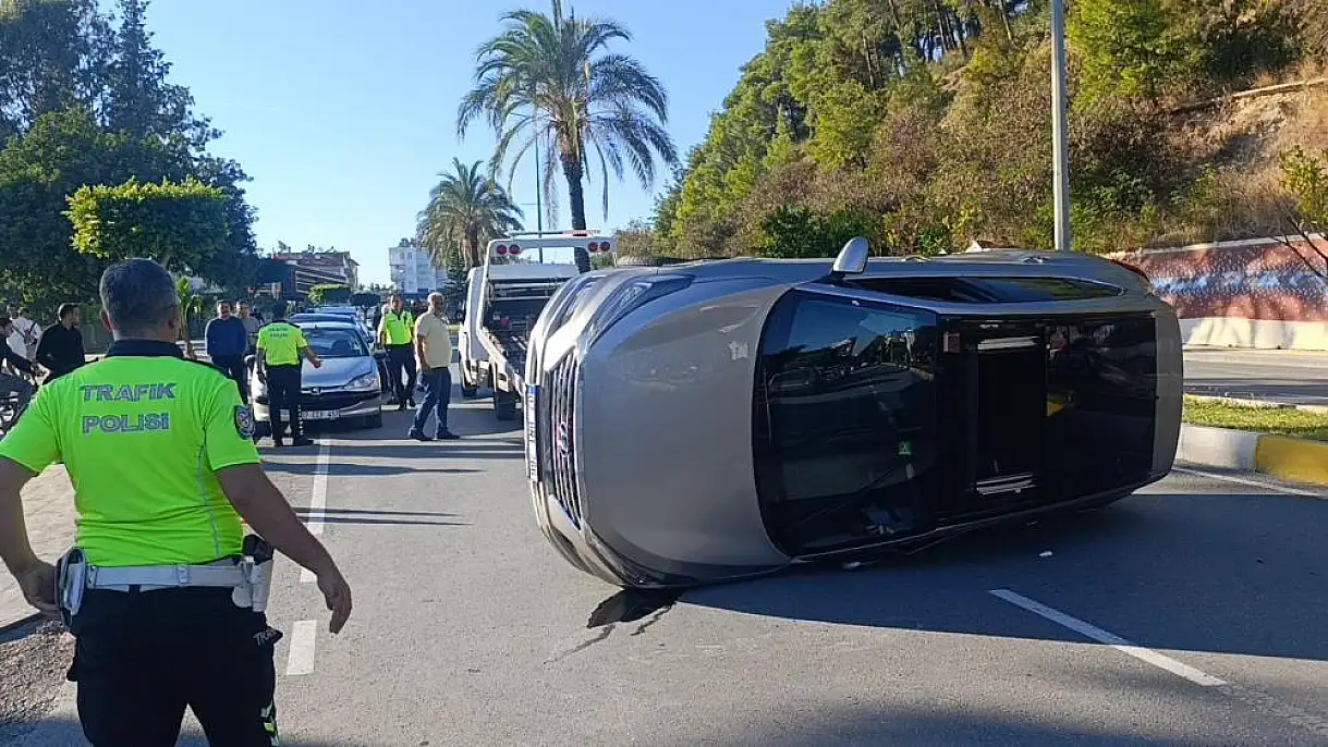 Antalya'nın Manavgat ilçesinde meydana gelen kazada yol kenarında park halindeki araçlara çarpıp devrilen otomobilin sürücüsü yaralandı.