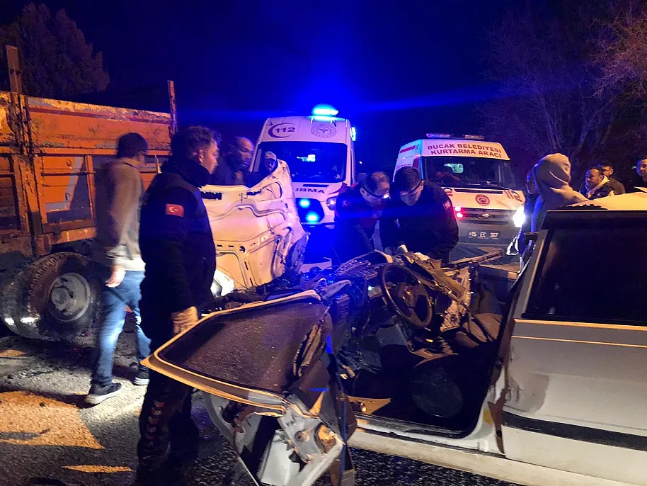 Olay yerine gelen itfaiye ekiplerinin çalışmalarıyla araç içerisinden çıkarılan sürücü, sağlık ekiplerinin ilk müdahalesinin ardından ambulans ile Bucak Devlet Hastanesine kaldırıldı.