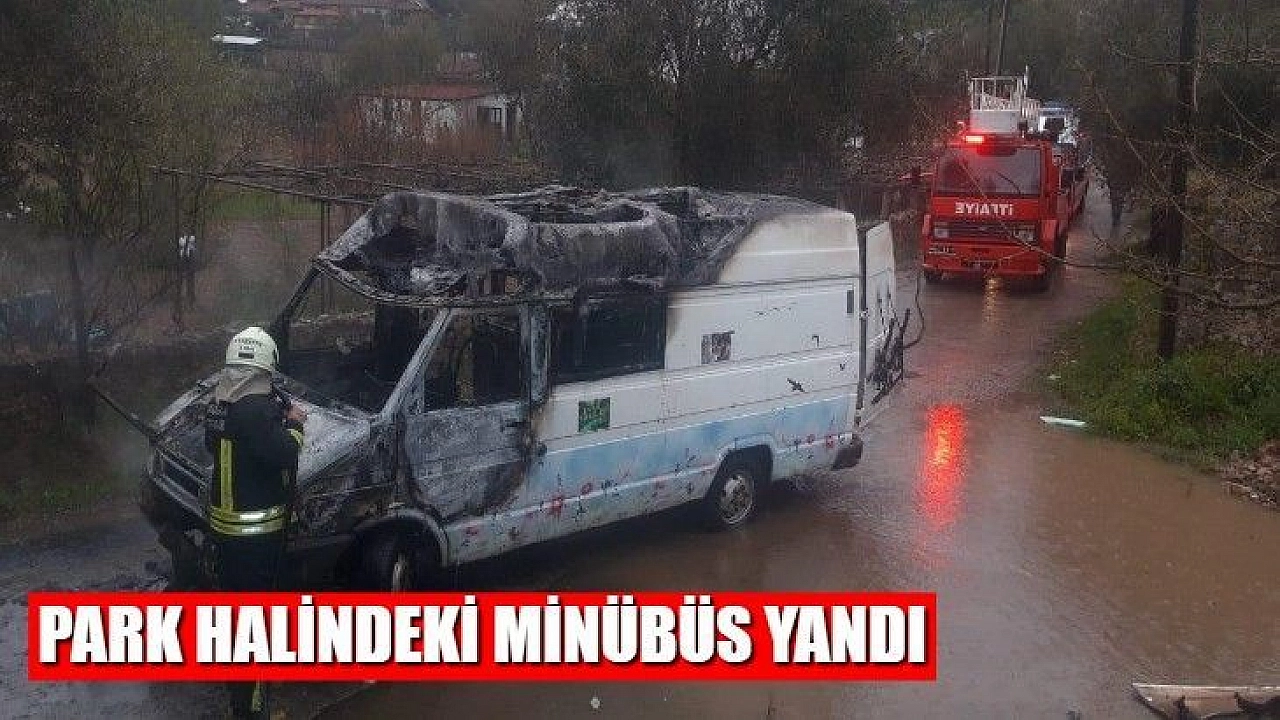 Muğla'nın Fethiye ilçesinde park halinde alev alan minibüs, yanarak kullanılamaz hale geldi.