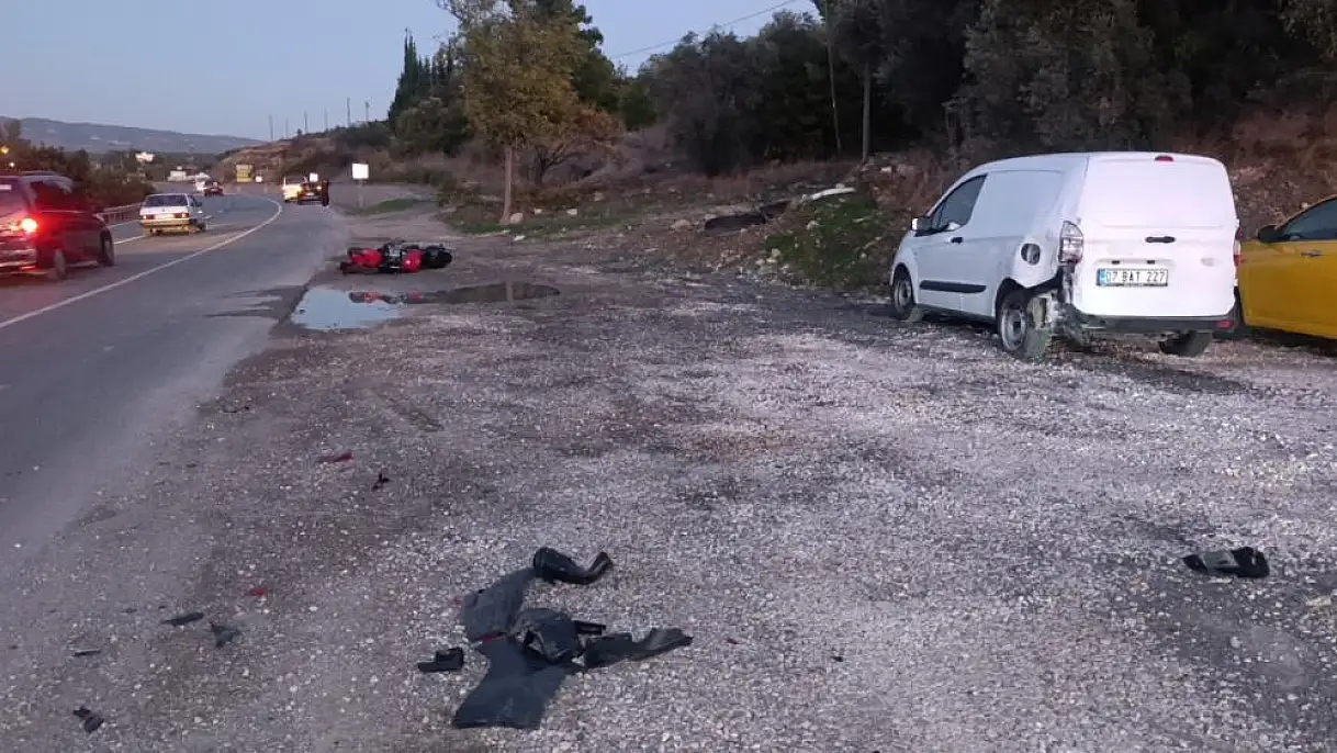 Motosiklet, yol kenarında park halindeki hafif ticari araca çarptı. Kazada motosiklet sürücüsü yaralanırken, yola savrulan parçalara çarpmamak için manevra yapan iki otomobil de maddi hasarlı kazaya karıştı.
