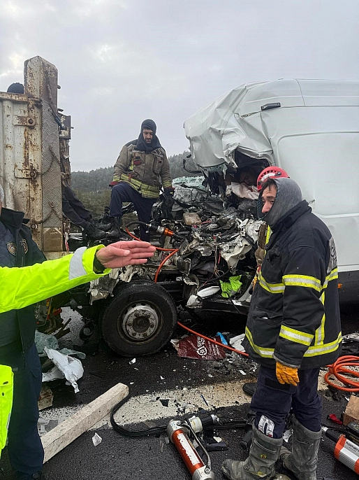Park halindeki tıra çarpan minibüs kağıt gibi ezildi: 1 ölü