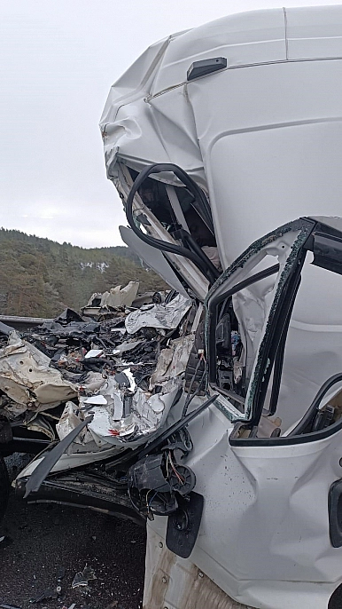 Park halindeki tıra çarpan minibüs kağıt gibi ezildi: 1 ölü