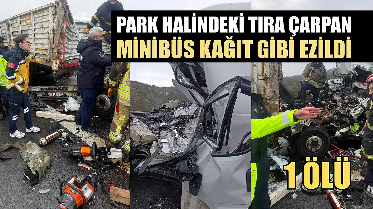 Park halindeki tırın dorsesine çarpan minibüs sürücüsü hayatını kaybetti.