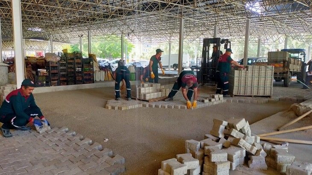 Menteşe Belediyesi'nin sokağa çıkma kısıtlaması sürecinde hızlandırdığı pazar yeri yenileme çalışmasında alt yapı yenileme çalışması tamamlandı. 7 bin metrekare kapalı alana sahip pazar yerinin son saha beton çalışmasını tamamlayan belediye ekipleri, önümüzdeki günlerde uzay çatı yenileme çalışmalarına başlayacak.