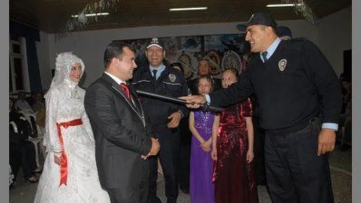 Fethiye’de bir kapkaç olayında eli silahlı şüphelinin üzerine atlayarak yakalayıp polise teslim eden gazeteci Ramazan Coşkun’un düğününü polisler bastı. Fethiye’de yerel bir gazetenin muhabirliğini yapmakta olan Ramazan Coşkun, adliye katibi Hayriye Sağlam ile dünya evine girdi. Fethiye Halk Eğitim Merkezi Müdürlüğü Salonu’ndaki düğüne özellikle siyaset dünyası yoğun ilgi gösterdi. Çok sayıda sivil toplum kuruluşunun çiçek gönderdiği düğüne Coşkun ve Sağlam ailelerinin yanı sıra belediye başkanları Adem Ayat, Alim Karaca, Bekir Eser, Keramettin Yılmaz, AK parti İlçe Başkanı Mustafa Ali Türkan, AK Parti Muğla Milletvekili Adayı Ali Boğa, Ak Parti İl Genel Meclisi Üyeleri, CHP İlçe Başkanı Ali Özgür Kullukçu, Saadet Partisi Milletvekili Adayı Ömer Uludağ, DSP Milletvekili Adayı Ali Konakçı, Esnaf Odası Başkanı Mehmet Soydemir, Şoförler Odası Başkanı Hayri Topçu, bazı daire amirleri ve çok sayıda davetli katıldı. Damat Ramazan Coşkun ile gelin Hayriye Sağlam’ın dans edip, bol bol oynadıkları gecede Fethiyeli sanatçı Eser Tunçoğlu davetlileri gece boyunca coştururken, piste davet edilen AK Parti Muğla Milletvekili Adayı Ali Boğa, AK Parti İlçe Başkanı Mustafa Ali Türkan ve diğer AK partililerle birlikte çiftetelli oynadı. Pistin hiç boş kalmadığı gecede birde sürpriz olay yaşandı. Fethiye Emniyet Müdürlüğü’ne bağlı polis ekipleri çift dans ederken, ellerinde coplarla salona girip damada ‘Başlık parasını vermeden, gelini kaçırmışsın. Hakkında şikayet var. Karakola gideceğiz’ denilince gelin ve damadın yakınları ile davetliler büyük bir şok yaşadı. Polis görevlileri yaklaşık 5 dakika boyunca damadı pist ortasında sorguya çekerlerken, bunun bir şaka olduğu anlaşılınca gelin ve damat ile polisler hep birlikte hareketli müzik eşliğinde oynamaya başladılar. Gelin ve damat çok mutlu olduklarını, düğüne iştirak eden hemen herkese teşekkür ettiklerini söylediler.