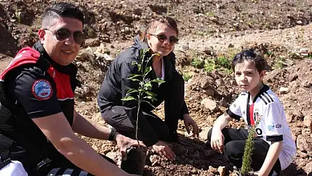 Polisler aileleri ile yanan alanlara fidan diktiler