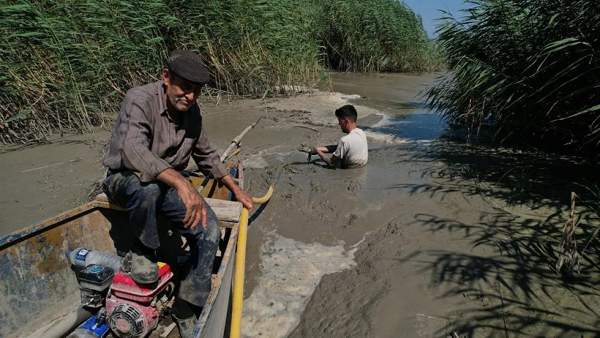 Hırsızlar nedeniyle mağdur olan çiftçiler bir damla su alabilmek için boğazlarına kadar çamura giriyor. 83 yaşındaki yaşlı adam su çekebilmek için boynuna kadar çamura giren torununu gözünü bir an bile kırpmadan bekliyor.