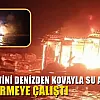 Prefabrik ev cayır cayır yandı, denizden kovayla su atarak söndürmeye çalıştı