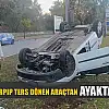 Refüje çarpıp ters dönen araçtan ayakta çıktı
