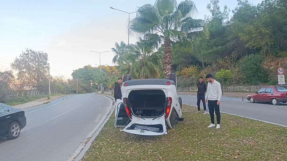 Antalya'nın Manavgat ilçesinde kavşağa yaklaştığı sırada refüj bordürüne çarparak ters dönen otomobil sürücüsü, kazayı hafif yaralı olarak atlatırken tedbir amaçlı hastaneye kaldırıldı.