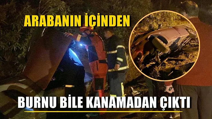 Refüje düşen arabanın içinden burnu bile kanamadan çıktı