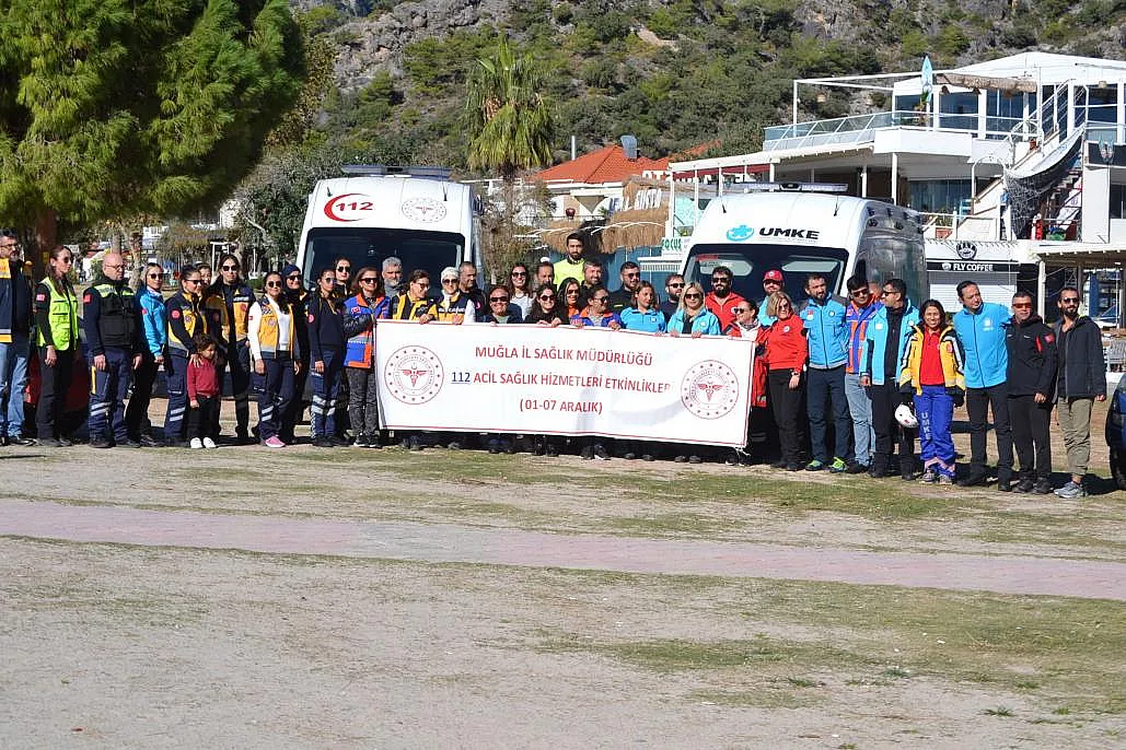 Muğla'nın Fethiye ilçesinde 'Acil Sağlık Hizmetleri Haftası'nı' acil sağlık merkezi çalışanları yamaç paraşütünde Türk bayrağı açarak kutladı.
