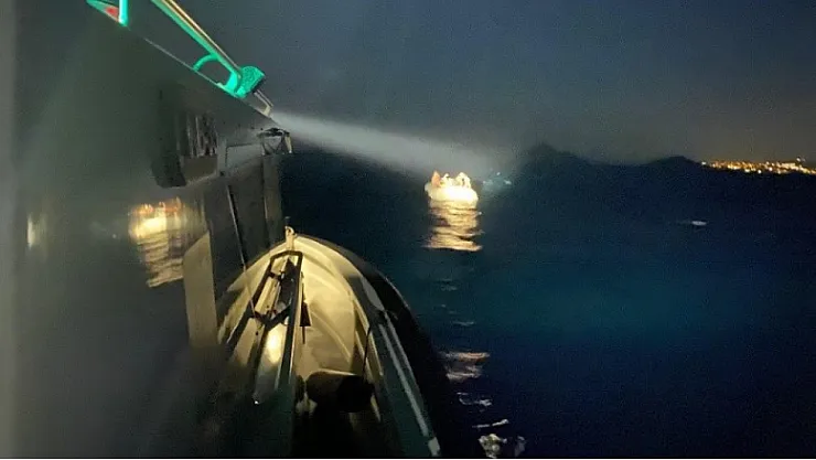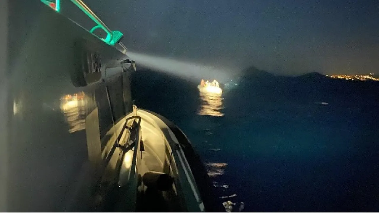 Yunanistan unsurlarınca Türk Karasularına geri itilen lastik bot içerisindeki 33 düzensiz göçmen ekiplerce kurtarıldı.