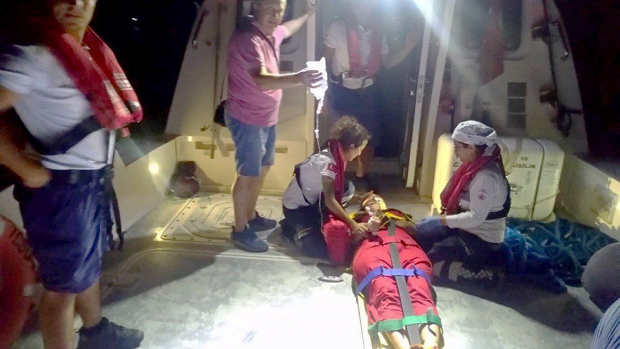 Teknede bulunanların 112 Acil Çağrı Merkezinden yardım istemesi üzerine olay yerine Göcek Sahil Güvenlik ve sağlık ekipleri sevk edildi. Kısa sürede olay yerine ulaşan ekipler ilk müdahalesi teknede yapılan Canan Ö., Sahil Güvenlik botuyla Göcek Sahil Güvelik İskelesi’nde bekleyen ambulansa götürüldü.