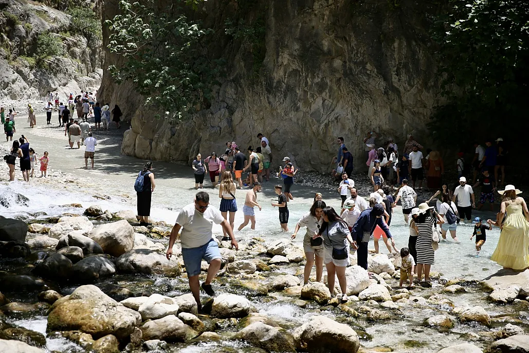 Muğla'nın Seydikemer ilçesindeki Saklıkent Kanyonu'nda, Kurban Bayramı'nın üçüncü gününde yoğunluk yaşandı.