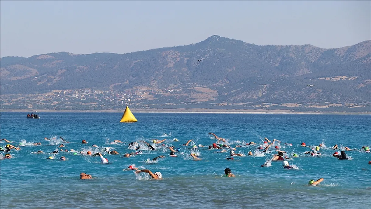 Burdur'un Yeşilova ilçesinde bulunan Salda Gölü'nde 344 sporcunun katılımıyla triatlon yarışması düzenlendi.
