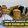 Saman yüklü tır devrildi sürücü öldü, eşi ve çocukları yaralandı