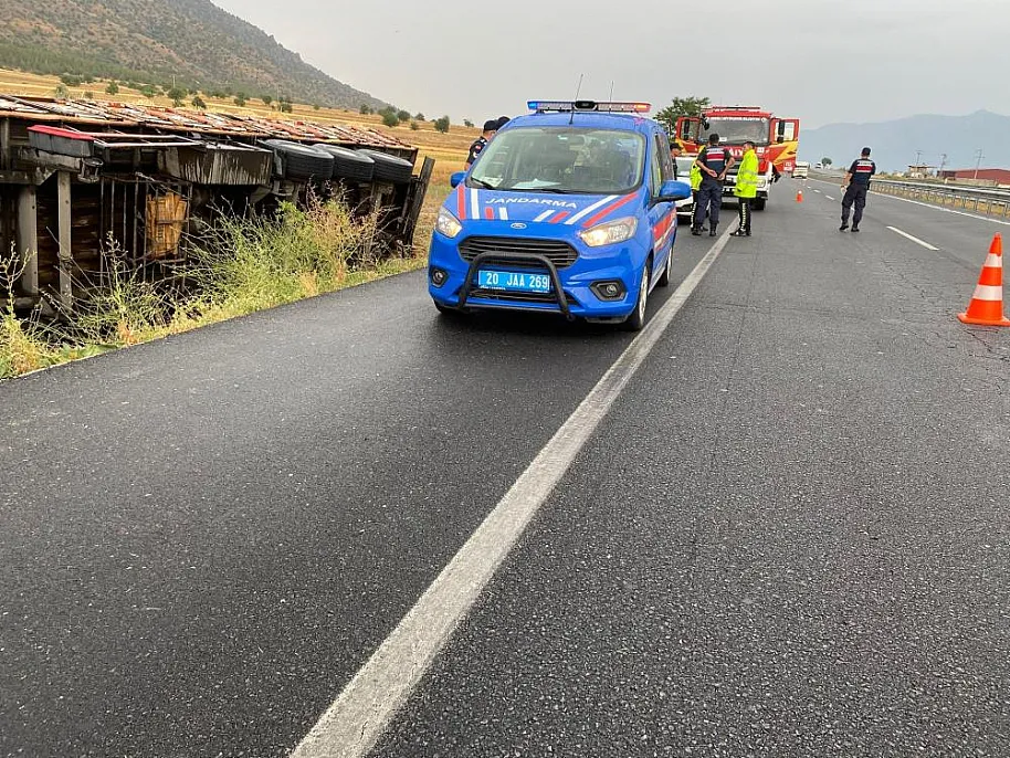 Saman yüklü tırın yağış nedeniyle kontrolden çıkarak devrilmesi sonucu meydana gelen trafik kazasında sürücü öldü, eşi ve iki çocuğu yaralandı.