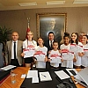 Bodrum Dans Kulübü'nün şampiyon sporcuları, Bodrum Belediye Başkanı Ahmet Aras'ı makamında ziyaret etti.