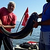 Balıkçı Minür Akkuş; “20 yıldır amatör balıkçılık yapıyorum. Balığı yakalarken ki duygularım anlatılmaz. Çok heyecanlıydım. Balığı çıkarmak için bir saatin üzerinde uğraştığım. Sicim parmağımı kesti. Kaçıracağımdan korktum.” dedi.