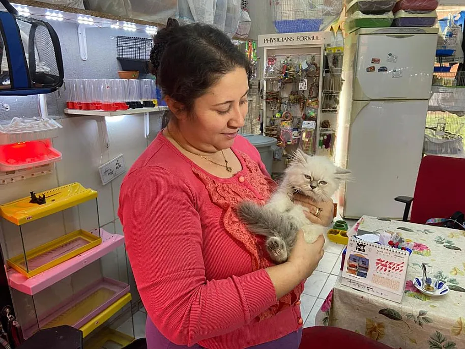 Satın aldıkları papağan hazırlanırken kediyi montuna gizledi: O anlar kamerada