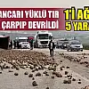 Şeker pancarı yüklü tır 2 araca çarpıp devrildi: 1'i ağır 5 yaralı