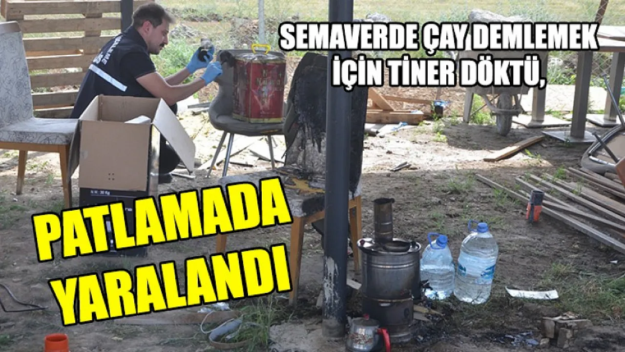 Bir kişi çay demlemek istediği semavere döktüğü tinerin patlaması sonucu yaralandı.
